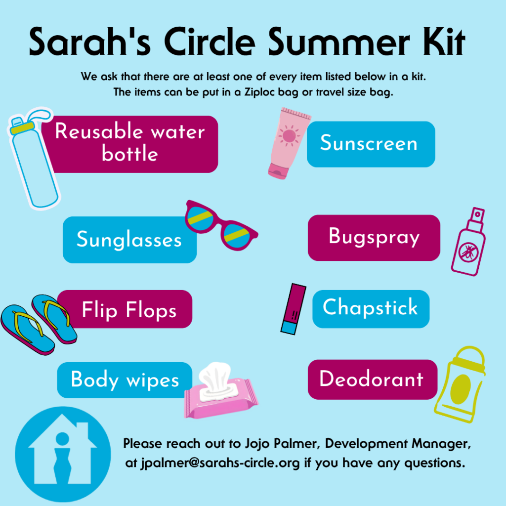 Serving more than 750 women each year means we distribute a constant supply of goods including hygiene items, cleaning supplies, socks, bras, and underwear. Sarah’s Circle gratefully accepts in-kind donations of items purchased from our online registry. Ordering from vendors on the registry is not required but we would appreciate similar items. Please contact us with any questions.